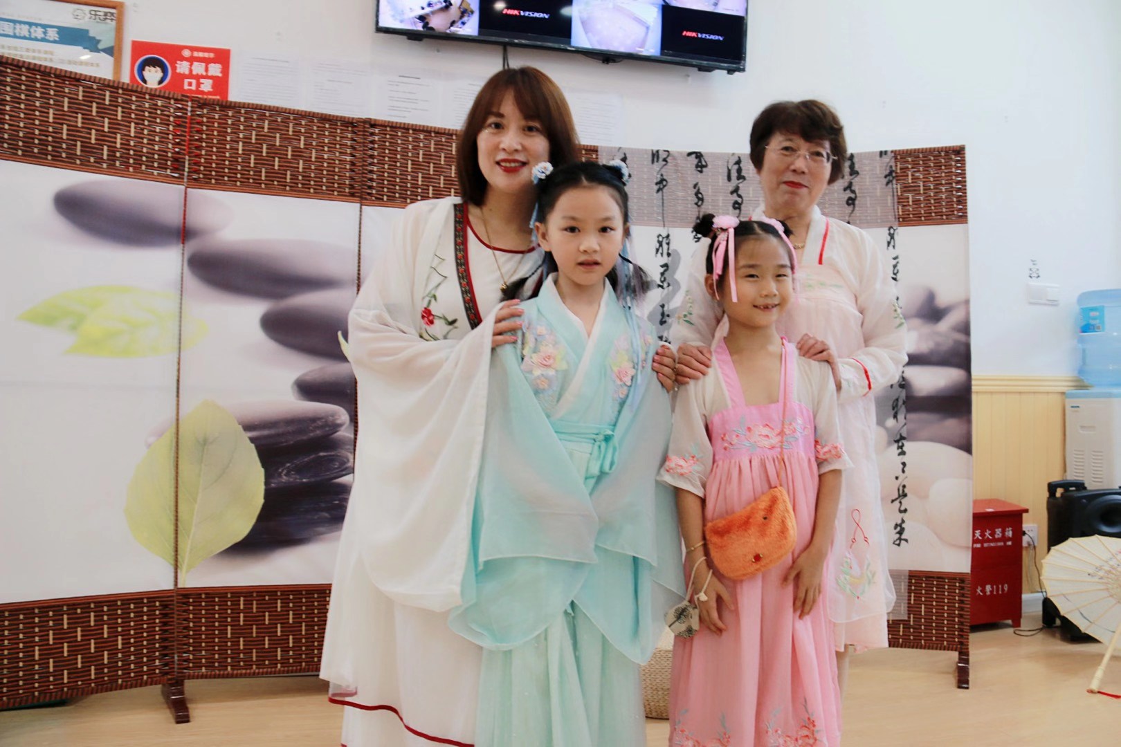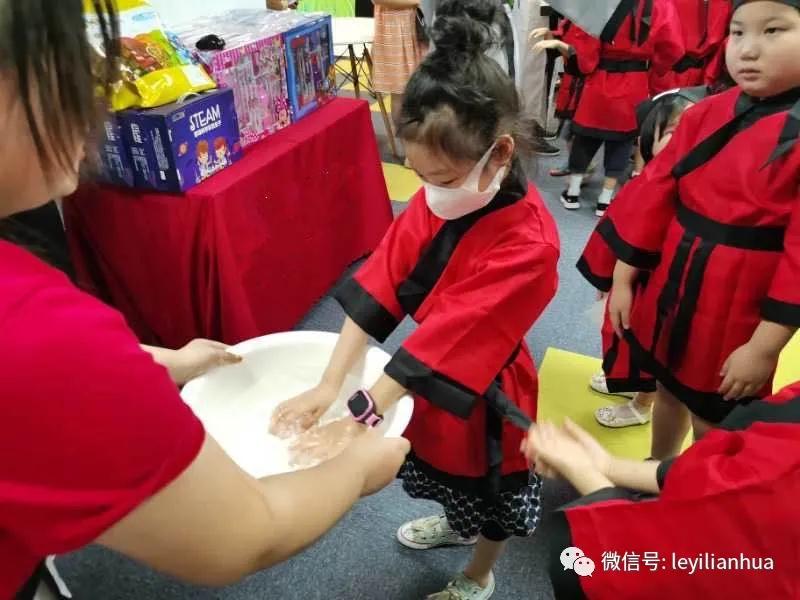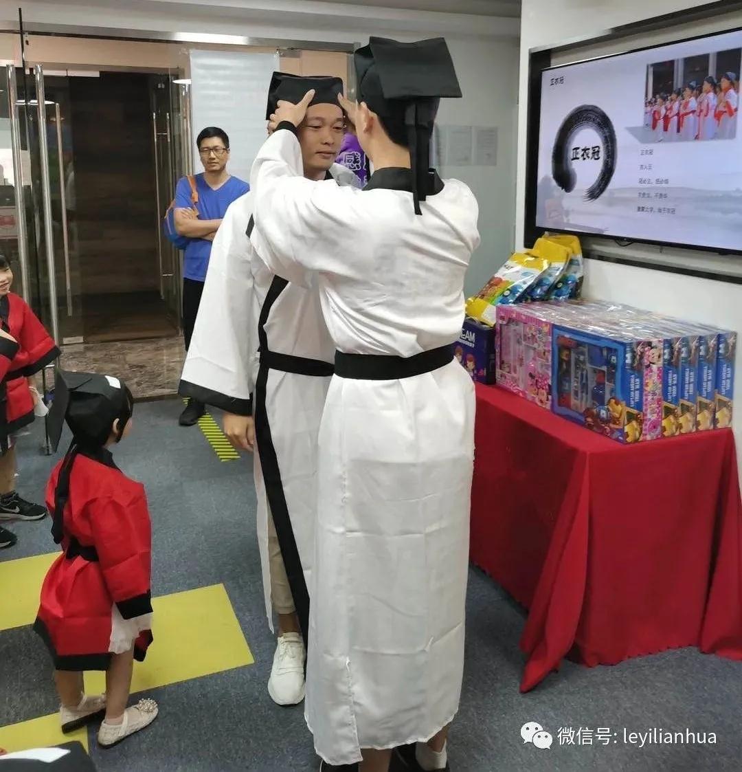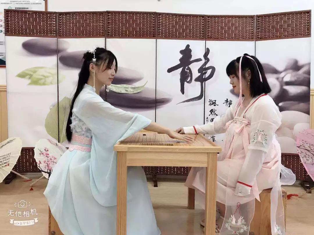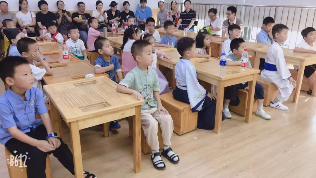 我们举办特色古装活动,孩子们会身着汉服下棋,正衣冠、行拜师礼、净手心、开笔礼。